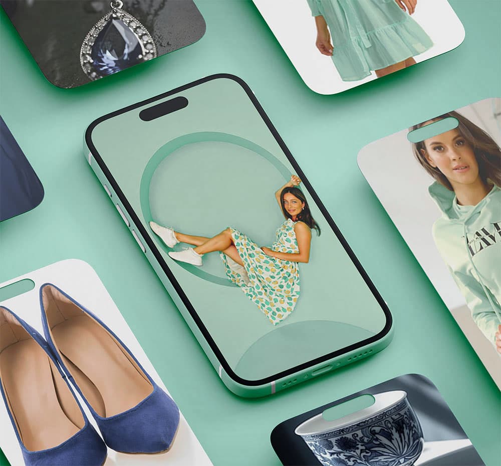 Upload a photo from your phone or use a mannequin shot. The system automatically removes the background and people, creating a perfect packshot. You simply approve the result.